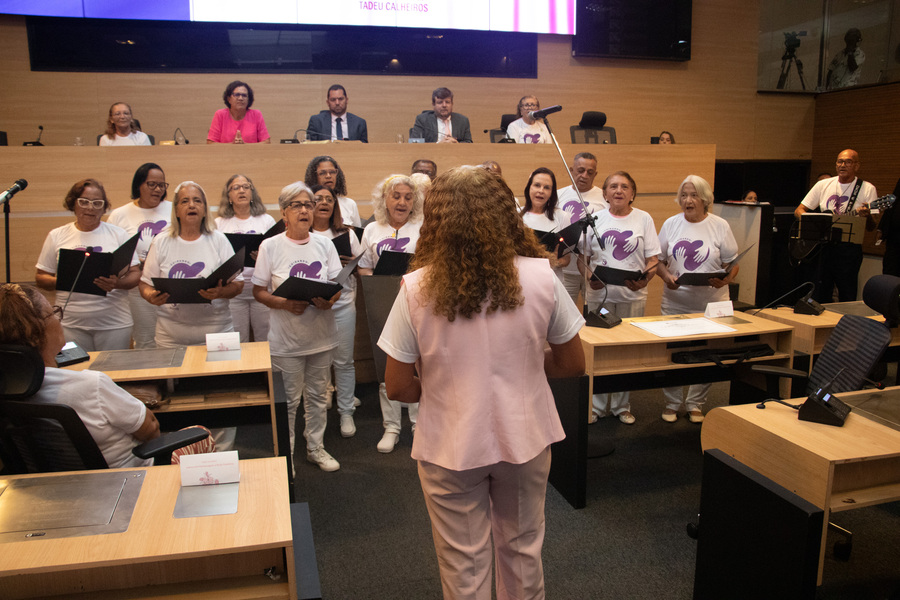 Em ato contínuo, o Coral das Mulheres de Rosa, formado por voluntárias e voluntários da Rede de Combate ao Câncer, fez uma apresentação musical.