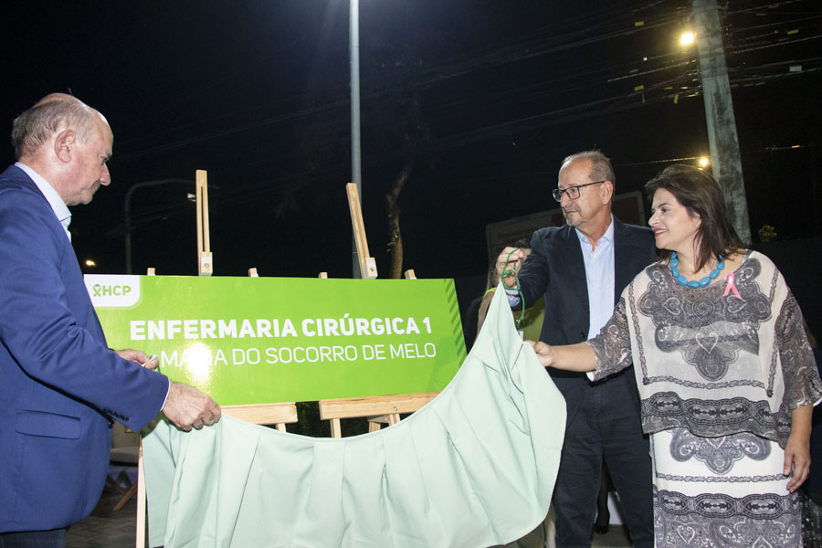 A solenidade também marcou um novo momento para o HCP. Para isto, o Dr. Bartolomeu melo, médico da equipe de cabeça e pescoço desta instituição foi chamado a frente do palco, onde acompanhado da governadora Priscila Krause e do presidente do conselho de administração da Sociedade Pernambucana de Combate ao Câncer (SPCC), Ricardo de Almeida, fizessem o descerramento e apresentação oficial do nome da nova enfermaria do segundo andar do bloco 13.