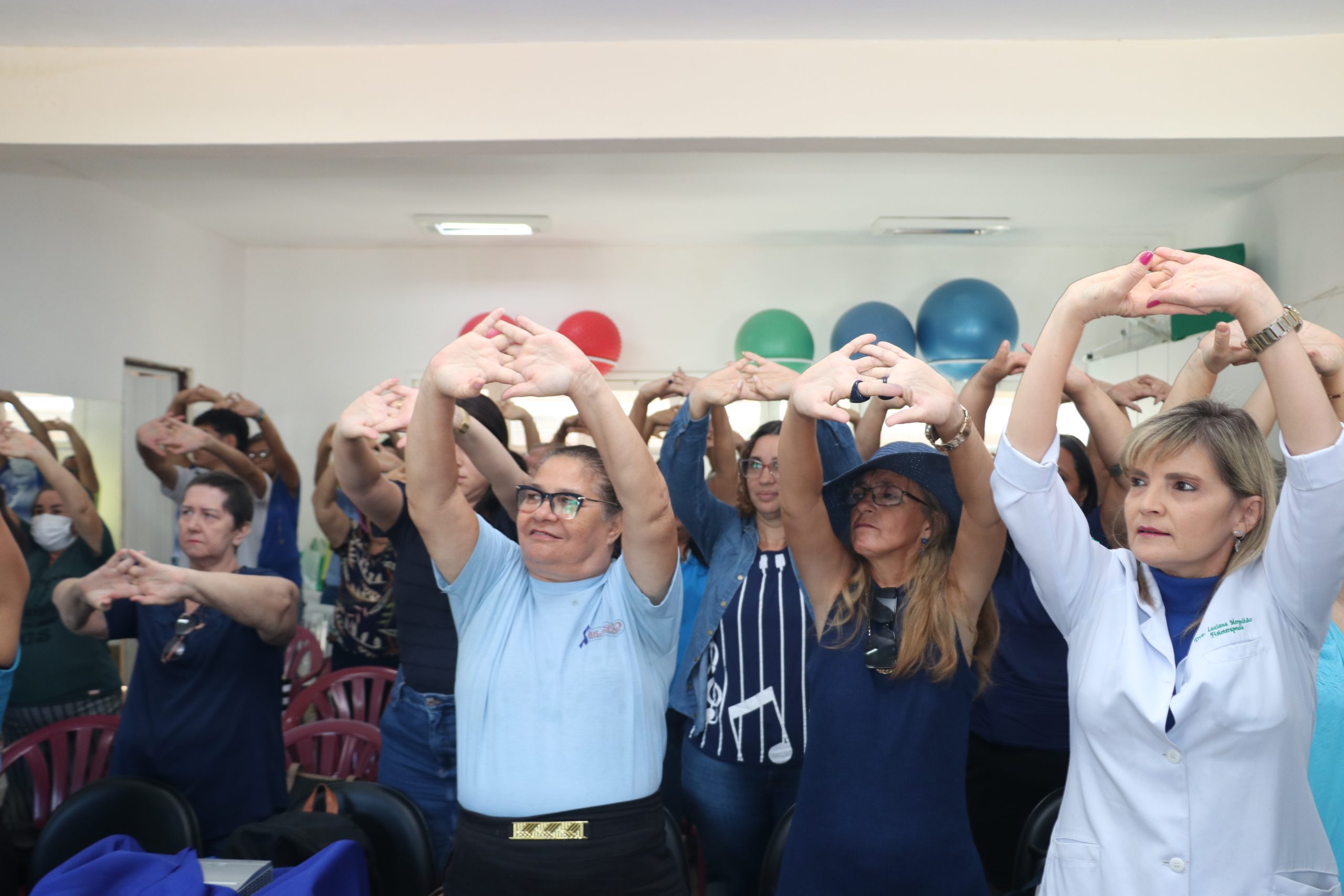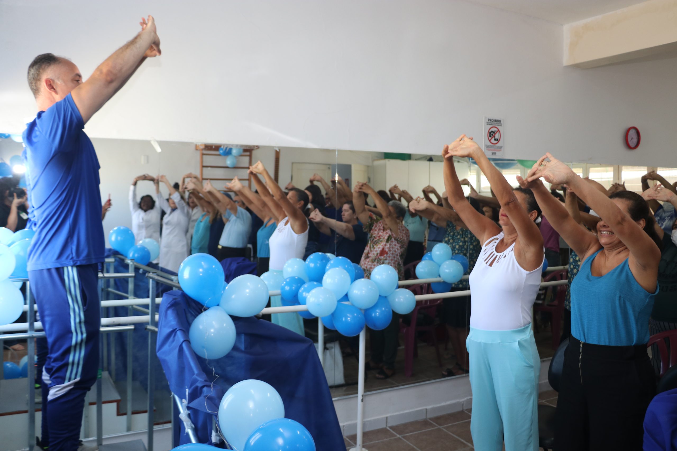 Para fechar o mês de Novembro, no qual se comemora o Novembro Azul – campanha de conscientização à saúde do homem -, a fisioterapia ambulatorial, coordenada por Luciana Mergulhão, promoveu uma tarde especial para os pacientes do serviço. Aproximadamente 50 pacientes participaram da aula de alongamento e assistiram a uma palestra no salão da fisioterapia.