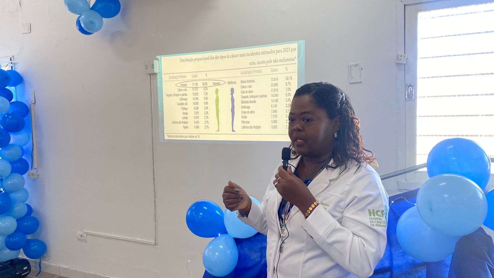 “É um momento de cuidado com os pacientes para que eles se sintam à vontade e saiam daqui relaxados e bem informados. A fisioterapia atua na reabilitação do paciente com câncer de próstata, por exemplo. Então, trabalhar esse tema é muito importante”, declarou Luciana Mergulhão.