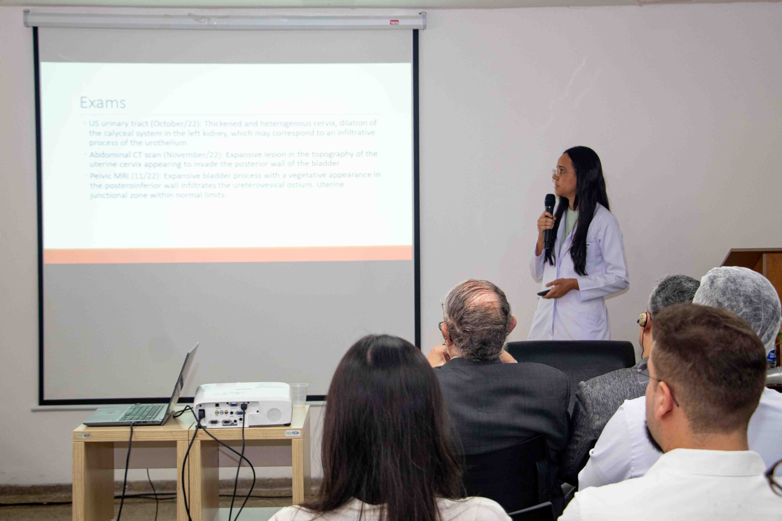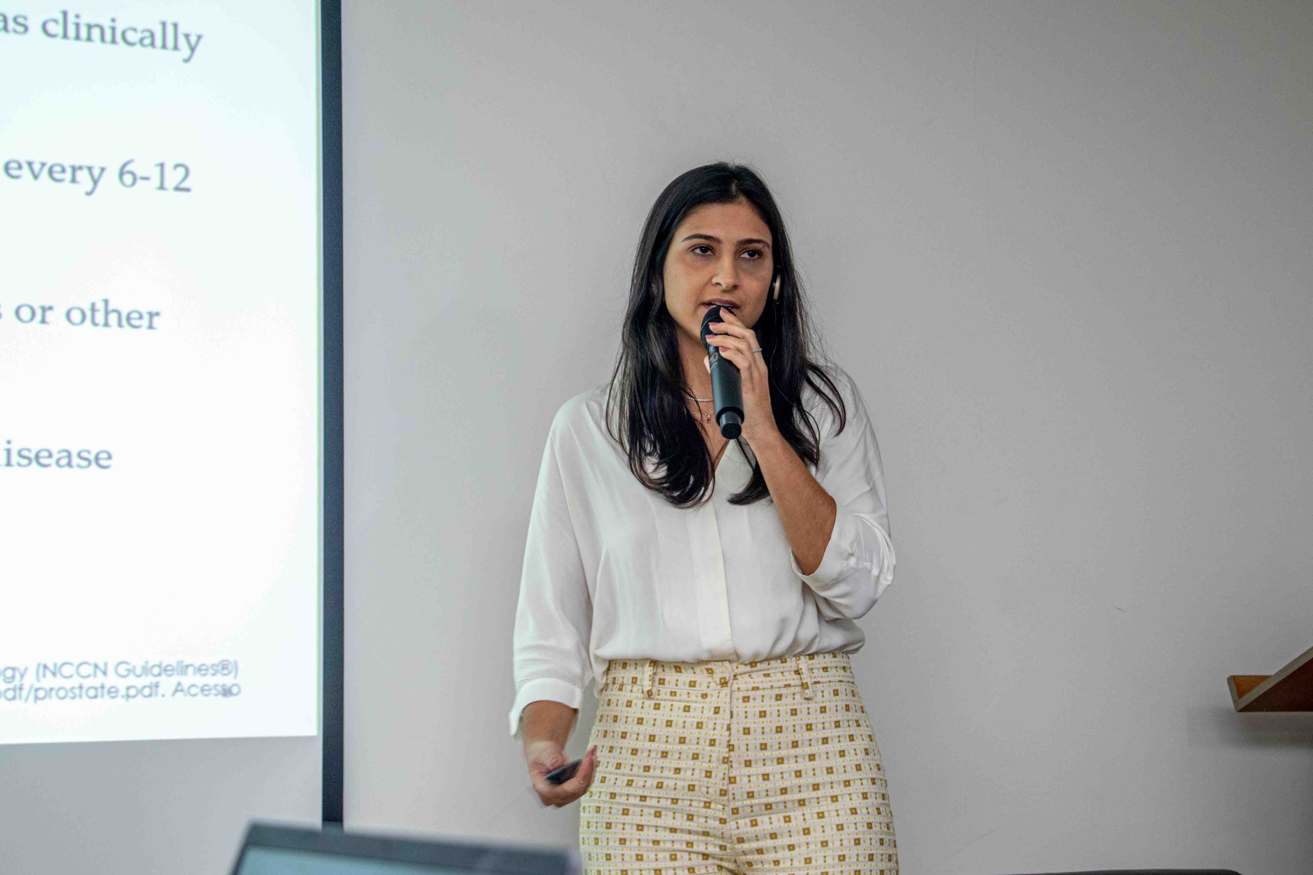 No HCP, a programação destacou a abordagem multidisciplinar dos casos e o olhar para diferentes estágios da doença. A manhã começou com a discussão de um caso de neoadjuvância, com participação de residentes e especialistas da casa, como os oncologistas Dr. Felipe Marinho e Dr. Elizabeth Ribeiro, o radioterapeuta Dr. Lucas Mendonça e os urologistas Dr. Eduardo Morais e Dr. Augusto César. O painel também contou com a presença do oncologista norte-americano Dr. Omer Kucuk, da Universidade de Emory (Atlanta).