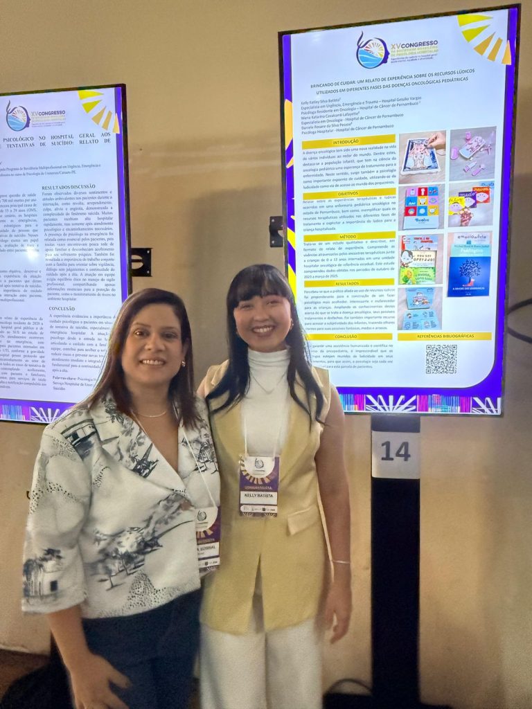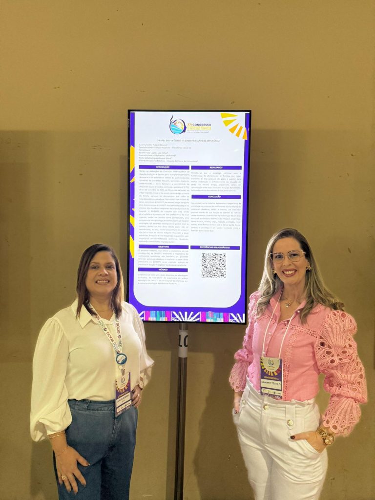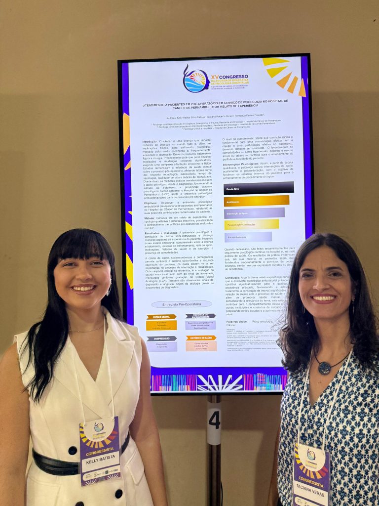 Representando o HCP, participaram as psicólogas Adélia Sobral e Daianny Teófilo, além das residentes em Psicologia Kelly Batista e Taciana Veras. Juntas, elas apresentaram sete trabalhos científicos que refletem a excelência e o compromisso do serviço com a humanização e o cuidado integral. A produção dos estudos contou com a colaboração de toda a equipe de Psicologia, formada também por Ana Paula Carreiro, Daniele Pessoa, Dênis Ramos, Fernanda Pizzato, Letícia Trindade, Maria Katarina Lafayette e Rosana Ramos.