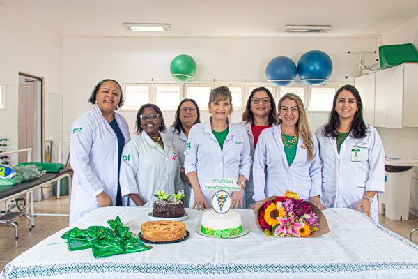 A equipe de Fisioterapia Ambulatorial também realizou uma comemoração especial para integração entre os profissionais. O setor é responsável pela reabilitação de pacientes que finalizam o tratamento hospitalar e seguem acompanhamento para retomada da funcionalidade e do movimento.