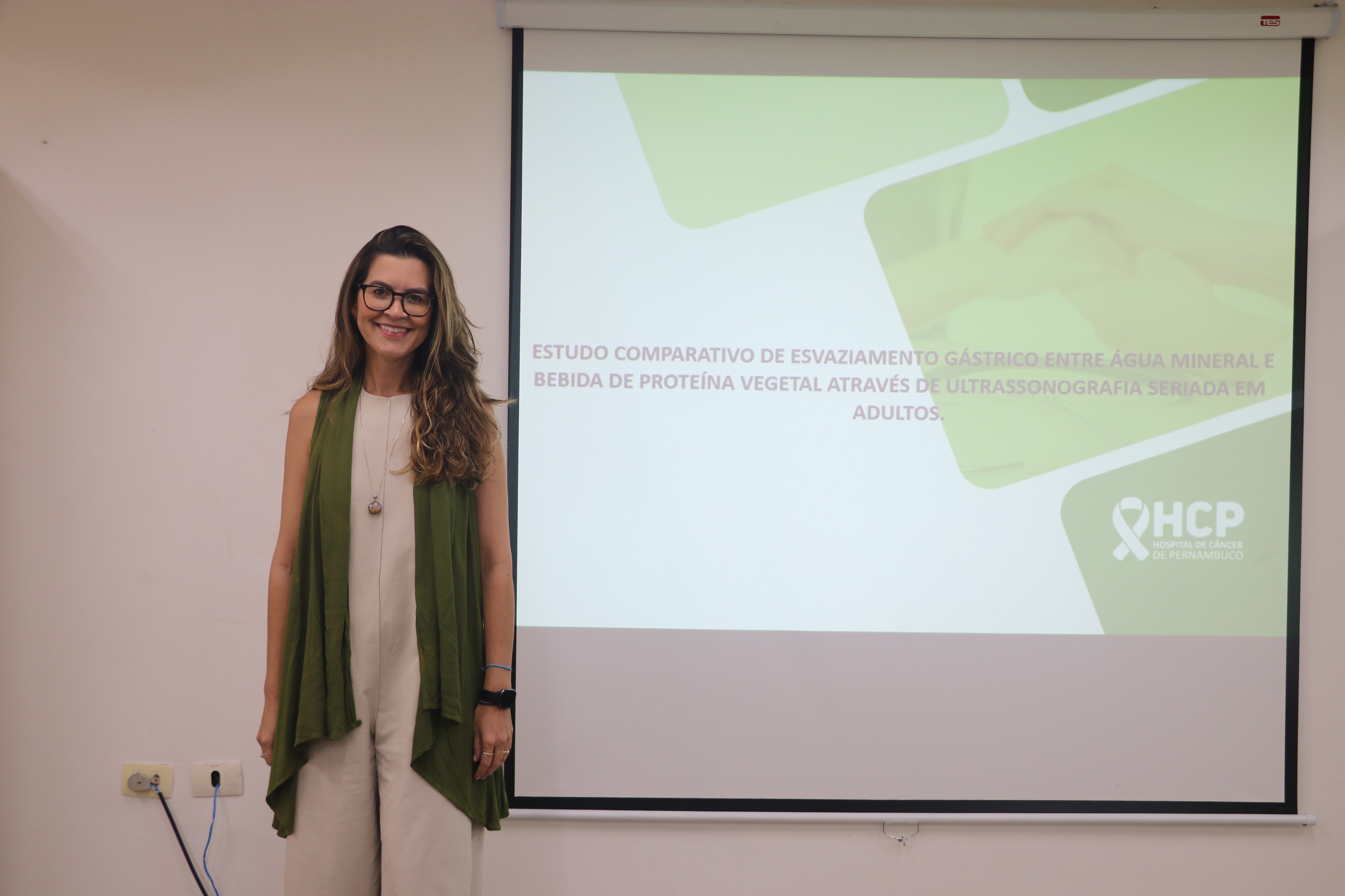 Na Anestesiologia, a residente Clarice Peixoto de Sousa apresentou o estudo “Comparação do esvaziamento gástrico após ingestão de água mineral e bebida vegetal proteica por meio de ultrassonografia seriada”. A pesquisa demonstrou variação significativa no esvaziamento gástrico da bebida vegetal, inviabilizando sua classificação como líquido claro para fins de jejum pré-operatório. O resultado reforça a manutenção dos protocolos de segurança anestésica adotados na instituição.