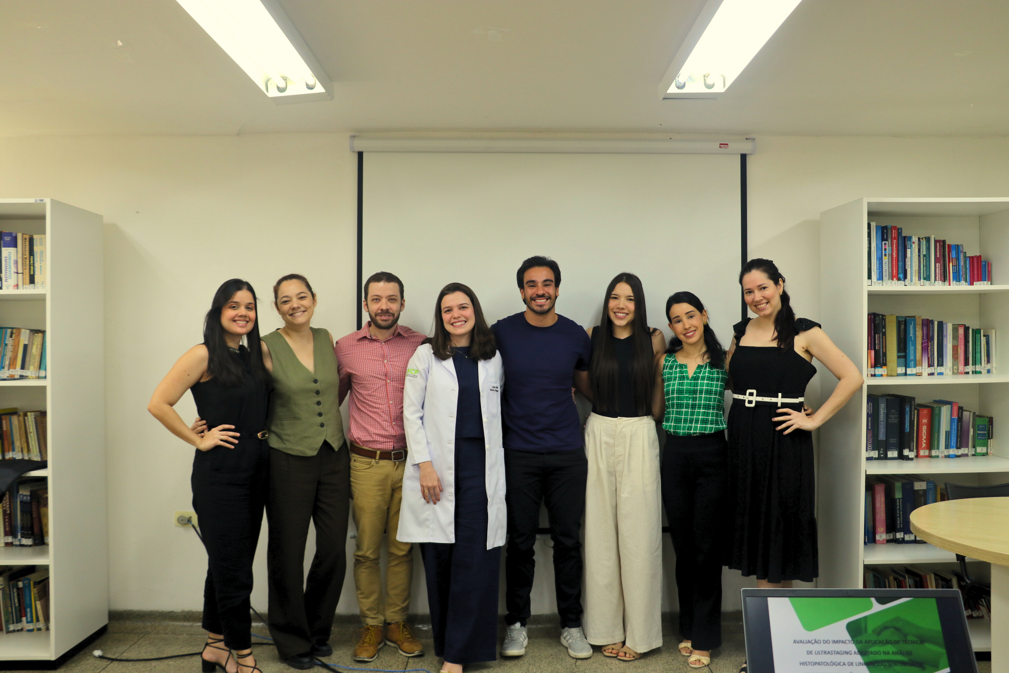 Na Patologia, a residente Laysa Ohanna apresentou o trabalho “Avaliação do impacto da aplicação de técnica adaptada de ultrastaging na detecção de metástases em linfonodo sentinela de pacientes com câncer de endométrio”. O estudo mostrou aumento na identificação de metástases microscópicas, com impacto direto no estadiamento e na definição do tratamento das pacientes.