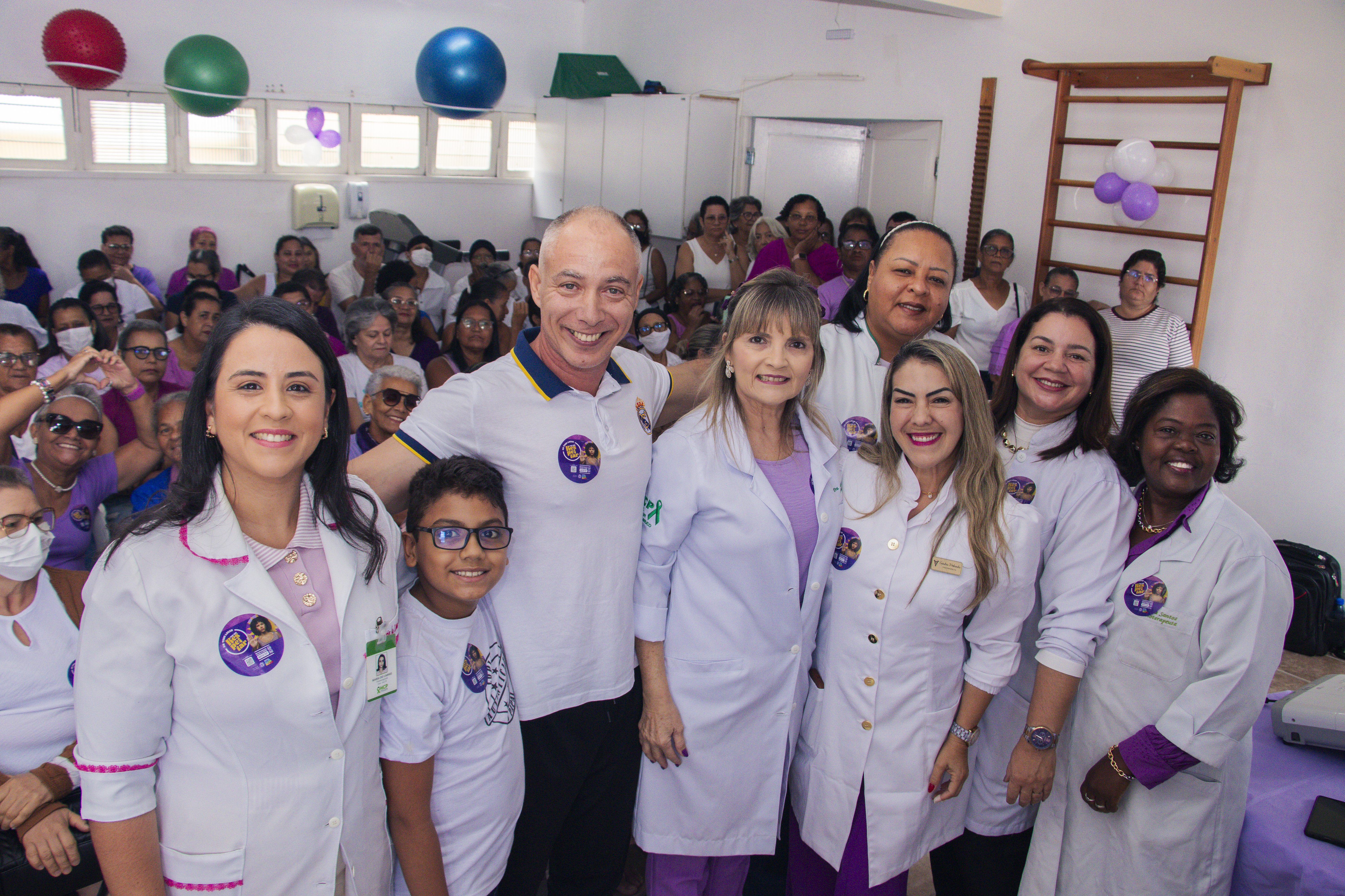 A ação reuniu mais de 80 pacientes no salão da Fisioterapia, com o objetivo de renovar a autoestima e fortalecer as mulheres que enfrentam o tratamento oncológico. Além da palestra, as pacientes desfrutaram de instantes de cuidado e bem-estar, iniciando com uma aula de alongamento conduzida pelo professor Saulo, da Aurora Funcional. A programação seguiu com o apoio da consultora Mary Kay e da equipe do Studio Help, que realizaram serviços de cabelo e manicure.