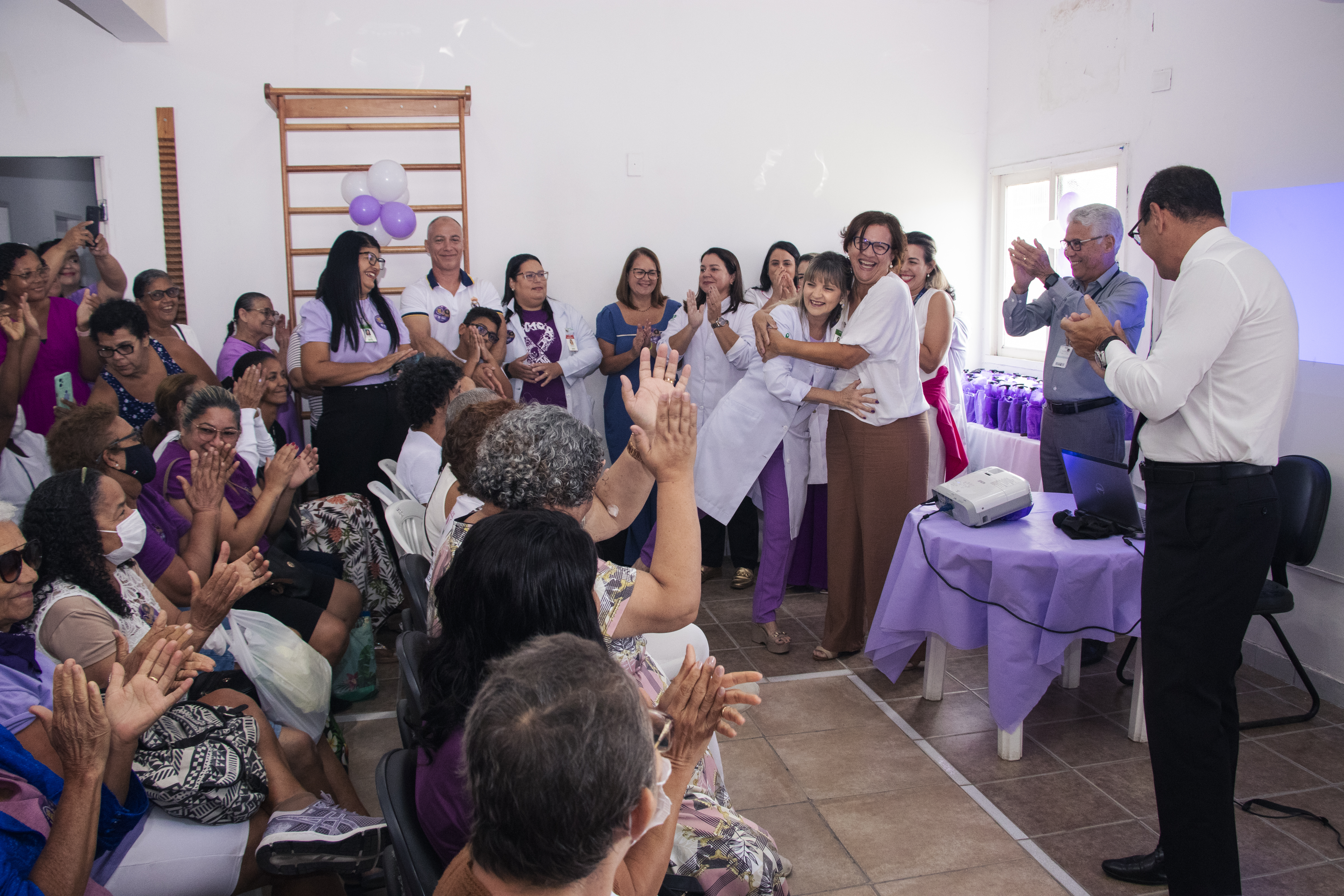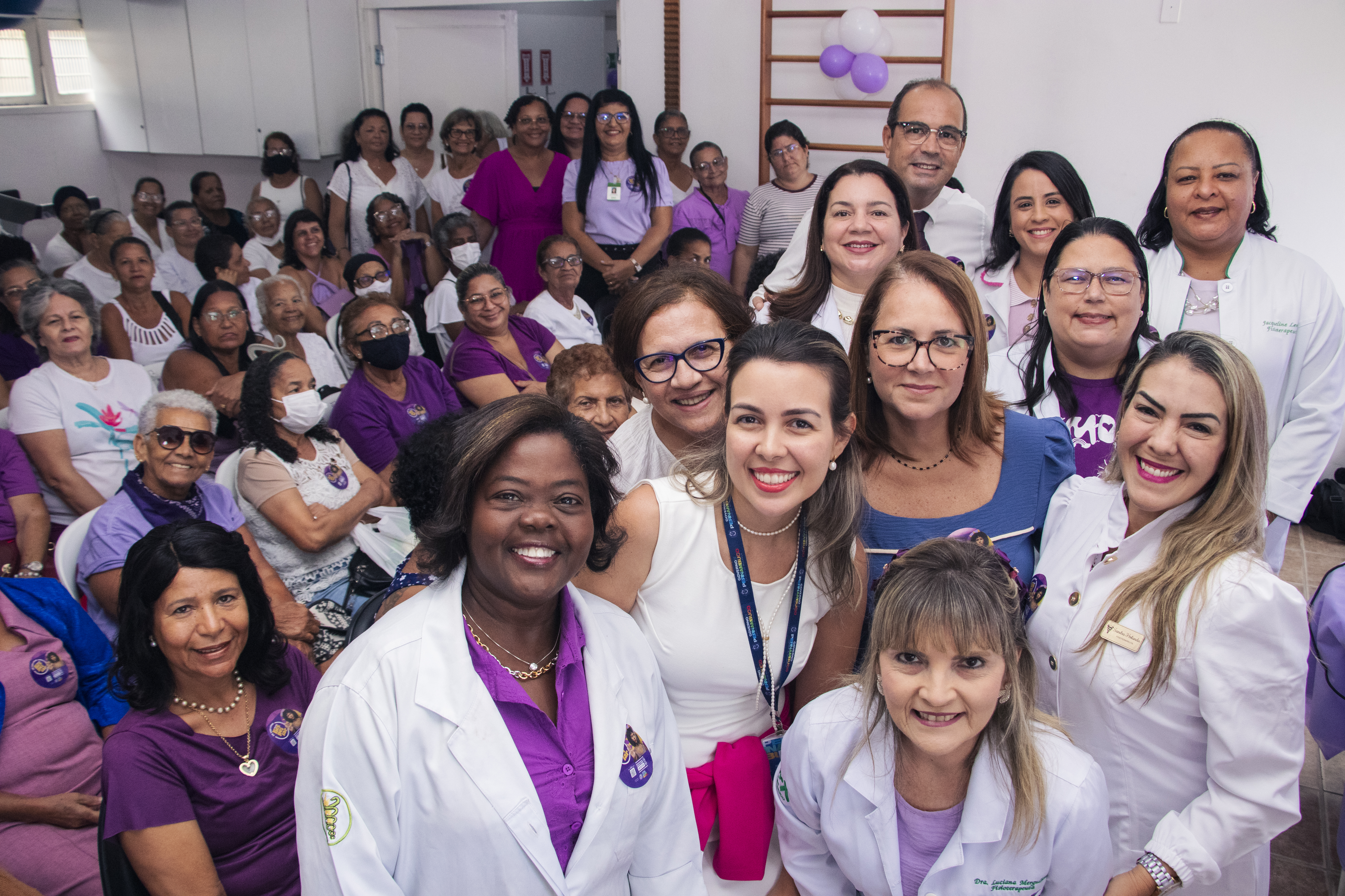 A ação reuniu mais de 80 pacientes no salão da Fisioterapia, com o objetivo de renovar a autoestima e fortalecer as mulheres que enfrentam o tratamento oncológico. Além da palestra, as pacientes desfrutaram de instantes de cuidado e bem-estar, iniciando com uma aula de alongamento conduzida pelo professor Saulo, da Aurora Funcional. A programação seguiu com o apoio da consultora Mary Kay e da equipe do Studio Help, que realizaram serviços de cabelo e manicure.