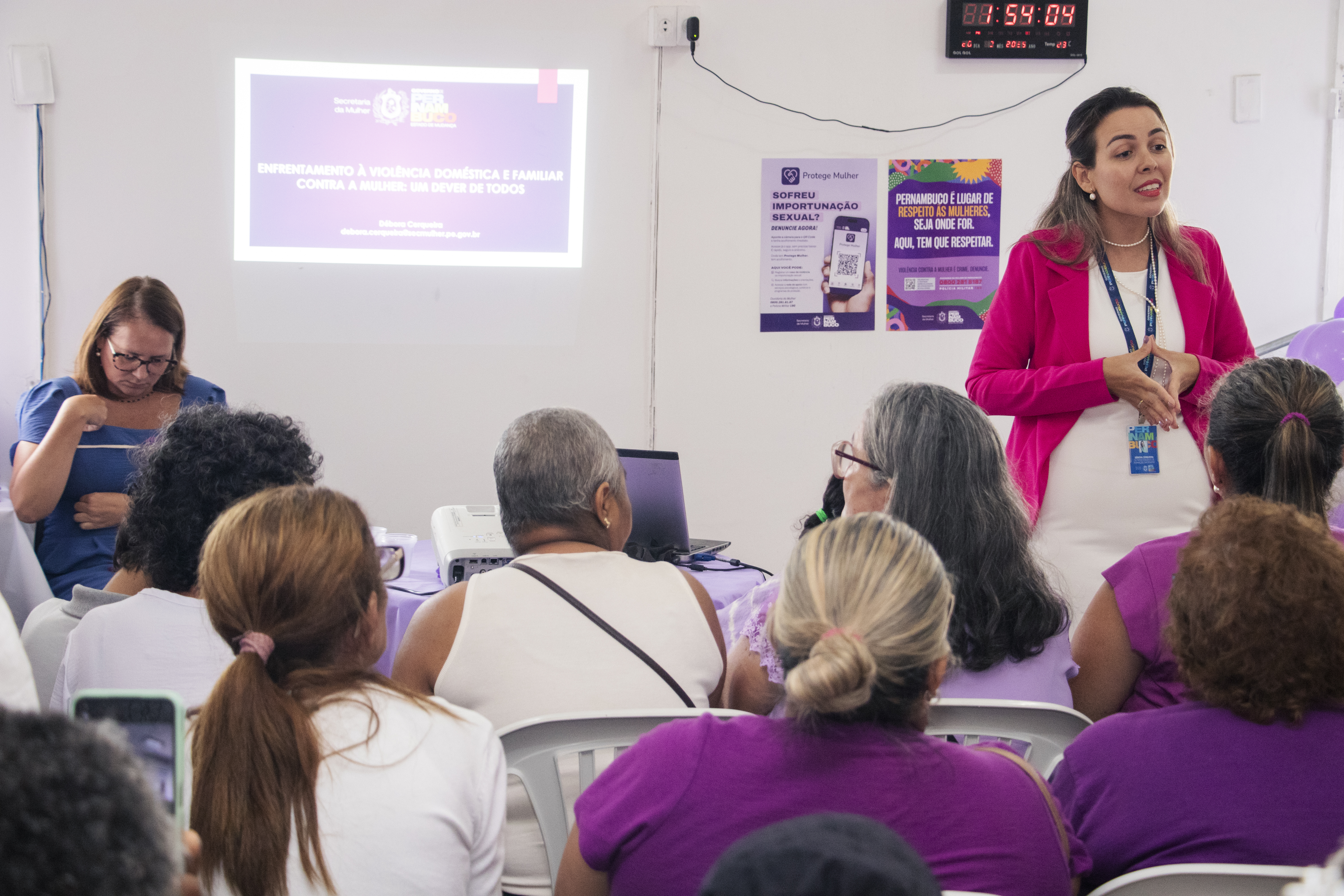 A programação principal foi conduzida por Débora Cerqueira, superintendente de Formação em Gênero da Secretaria da Mulher de Pernambuco (SECMULHER-PE), que palestrou sobre o ciclo da violência doméstica, as leis de proteção e os canais de denúncia. A superintendente enfatizou que a informação e a conscientização — não apenas para mulheres, mas para toda a sociedade — são os primeiros passos para o combate às agressões, sejam elas psicológicas, físicas ou, em instâncias extremas, o feminicídio.